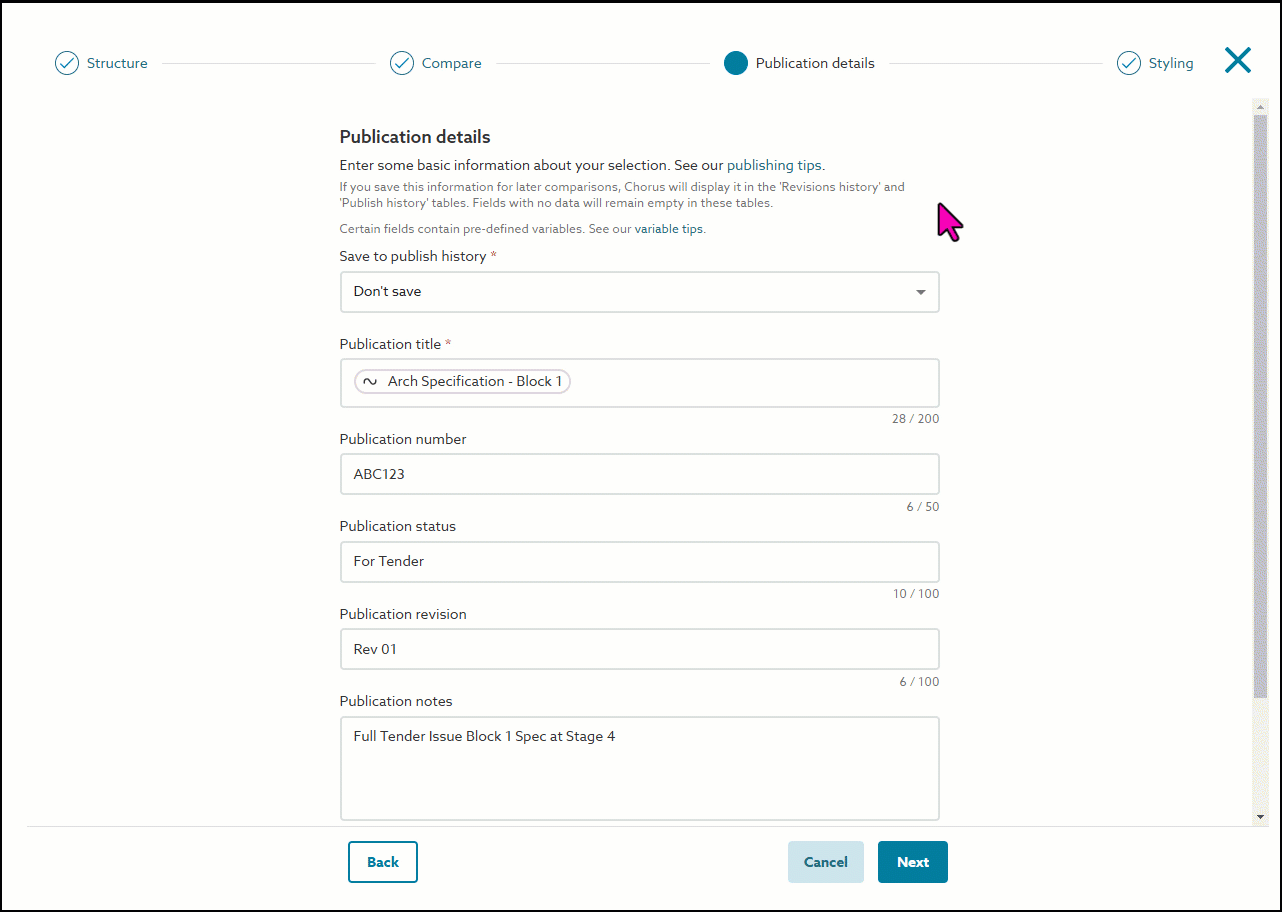 - When you publish your specification, your default stylesheet will be the one pre-selected at the Styling step of the Publishing wizard.